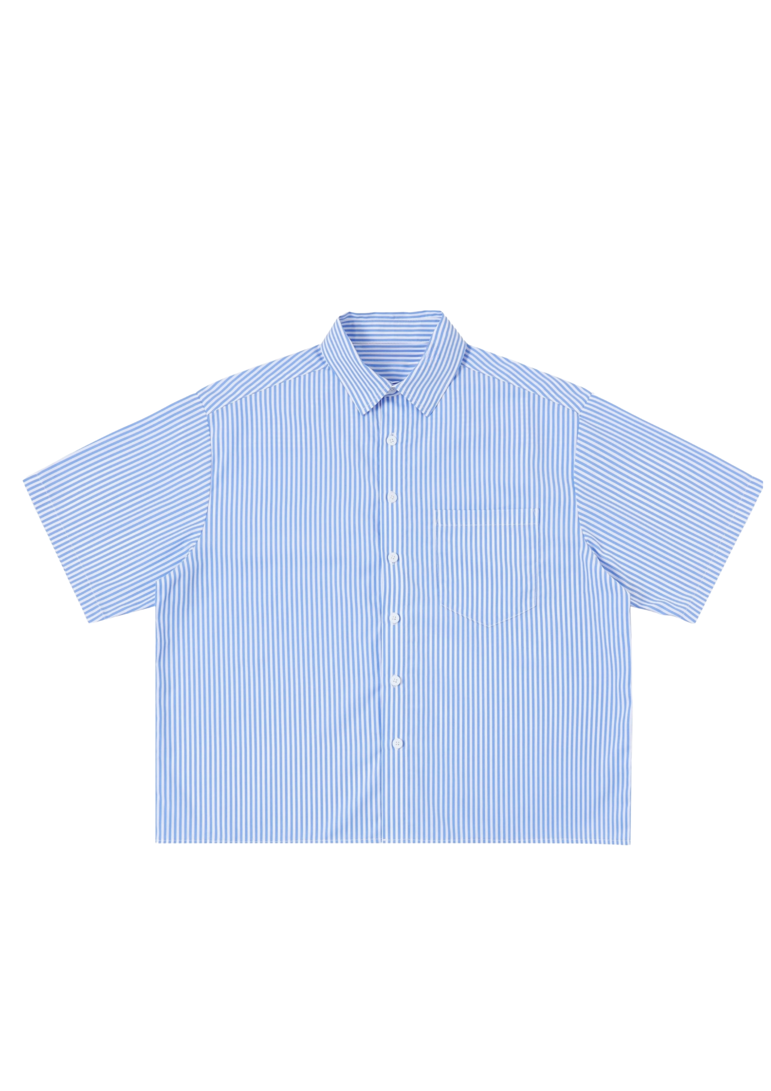 BOXY STRIPED SHORT-SLEEVE SHIRT - BLUE
